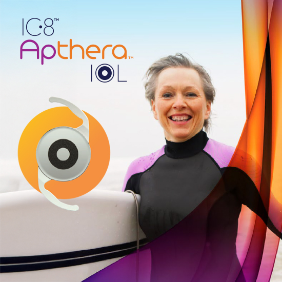The Apthera intraocular lens (IOL) is a special small aperture lens designed to adjust vision for problems caused by irregular corneas.